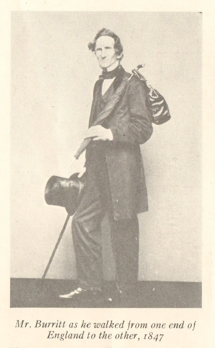 Mr. Burritt as he walked from one end of England to the other, 1847. New Britain Chamber of Commerce Magazine, April 1926. Collection of the New Britain Industrial Museum.